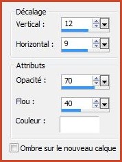 13 - Effets/Effets 3D/Ombre Portée : 12/9/70/40/couleur #ffffff