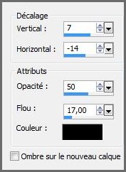 19 - Effets/Effets 3D/Ombre Portée : 7/-14/50/17/couleur #000000