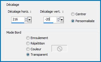 16 - Activer le tube Elemento2_aliciar.pspimage Edition/Copier/Edition/Coller comme nouveau calque 17 - Effets/Effets d'image/Décalage réglages suivants :
