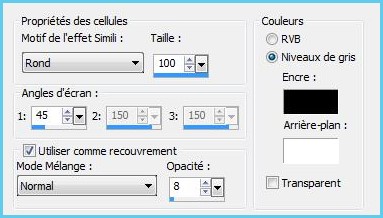 2 - Effets/Effets Artistiques/Simili réglages suivants :