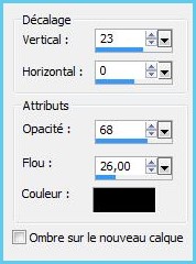 11 - Effets/Effets 3D/Ombre Portée : 23/0/68/26/couleur #000000
