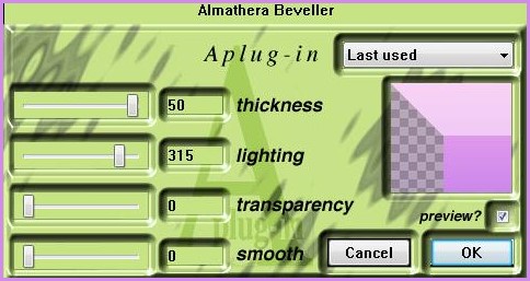3 - Effets/ Almathera/A Beveller réglages suivants :