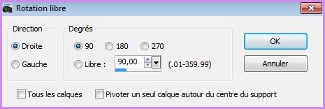 9 - Calques/Dupliquer Image/Redimensionner à 80%/décocher " Redimensionner tous les calques" **Image/Rotation libre de 90° à droite