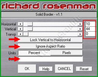 2 - Effets/Richard Rosenman/Solid Border réglages suivants : (Clic sur Lock et Ignore/ Couleur #ffffff)
