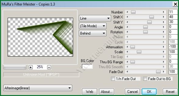 8 - Effets/MuRa's Meister/Copies réglages suivants : Afterimage(linear)