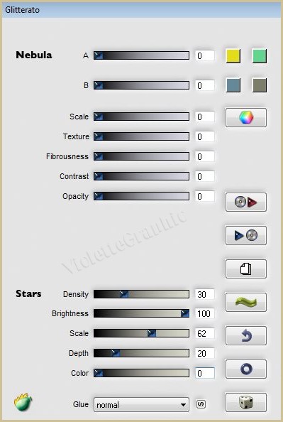 2 - Effets/Flaming Pear/Glitterato réglages suivants :