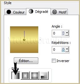 **Remplir de gradient Goldgradient / linéaire /angle: 0°/ répétition: 0