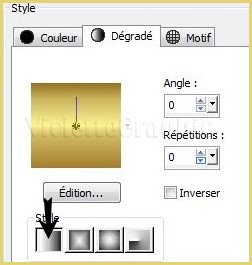 3 - Remplir de gradient Goldgradient / linéaire /angle: 0°/ répétition: 0