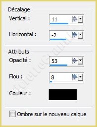 14 - Effets/Effets 3D/Ombre Portée : 11/-2/53/8/couleur #000000