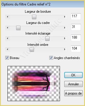 19 - Effets/BorderMania/Cadre relief #2 réglages suivants :