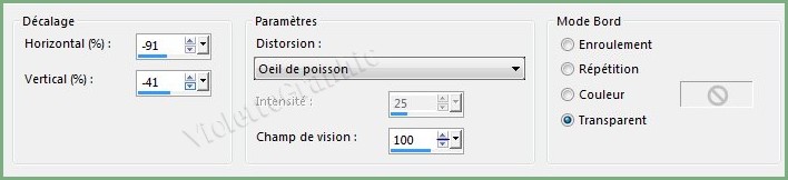 5 - Effets/Effets de Distorsion/Distorsion de l'objectif réglages suivants :