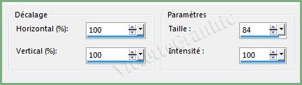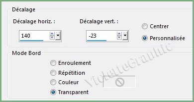 8 - Image/Redimensionner à 120%/décocher " Redimensionner tous les calques" 9 - Effets/Effets d'image/Décalage réglages suivants :