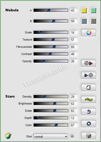 18 - Opacité à 73% 19 - Effets/Effets d'éclairage/projecteurs réglages suivants : fantasia6_aliciar