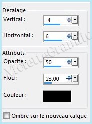 6 - Effets/Effets 3D/Ombre Portée : -4/6/50/23/couleur #000000