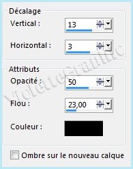 8 - Effets/Effets 3D/Ombre Portée : 13/3/50/23/couleur #000000