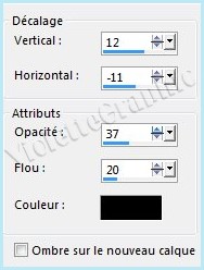 16 - Activer le calque fusionnéEffets/Effets 3D/Ombre Portée : 12/-11/37/20/couleur #000000
