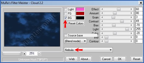 3 - Effets/ Mura's Meister/Cloud réglages suivants :