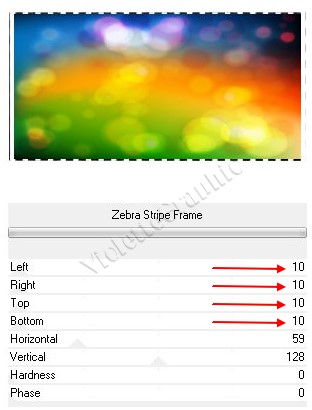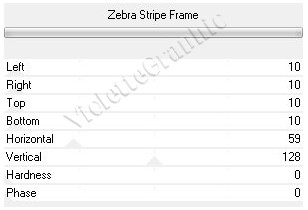20 - Effets/ Unlimited 2,0/Layout Tools/Zebra Stripe Frame réglages suivants :