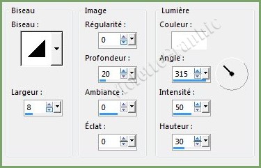 7 - Effets/Effets 3D/Biseautage Intérieur réglages suivants :