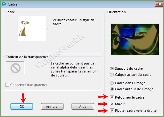 9 - Sur le même calque Image/Cadre: aliciar_3.PspFrame réglages suivants: