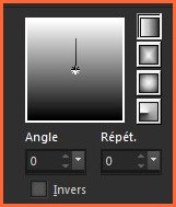 *** **Ouvrir les tubes , les dupliquer et fermer les originaux Placer en premier-plan la couleur #000000 et en arrière-plan la couleur #ffffff1 - Dans la Palette de Style Configurer un dégradé linéaire angle: 0°/Répétition: 0/Inverser non coché