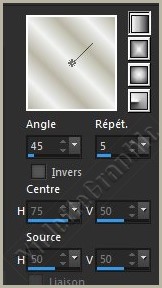 1 - Dans la Palette de Style Configurer un dégradé linéaire angle: 0°/Répétitions : 5/Inverser non coché