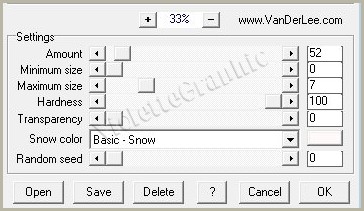 12 - Effets/VanDer Lee / SnowFlackes réglages suivants :