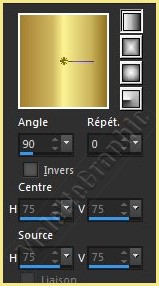 1 - Ouvrir une image transparente de 850 x 600 pixels Remplir de dégradé linéaire/angle: 90°/répétition : 0