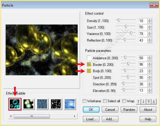 3 - Effets/Flaming Pear/Bubble réglages suivants: