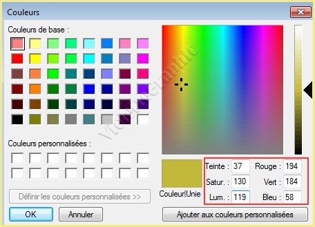 Ambiance couleur #ffffff/ couleur bulle: 194/184/58 Clic dans les carrés Border et Body et placer cette couleur