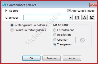 4 - Sur le calque 2 **Effets/Effets de Distorsion/Coordonnées Polaires réglages suivants :