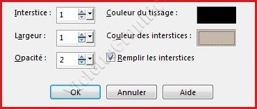 10 - Activer le calque 1 Effets/Effets de Textures/Textile réglages suivants : couleurs : #000000/#c5b8aa
