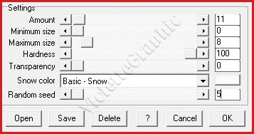 **Retourner dans votre PSP **clic sur annuler **Effets/Vanderlee/SnowFlakes réglages suivants: amount : 15 **Edition/Copier **revenir dans AnimationShop Edition/Coller après l'image active