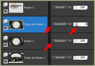 Mes options: Raster 1 / Mode de fusion : Exclusion / Opacité 100% Copie de Raster 1/Mode de fusion : Assombrir