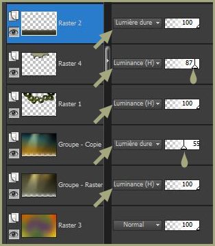 Placer les modes de fusion et opacités suivantes :