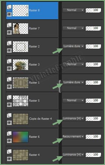 **Placer les modes de fusion et opacités suivantes :