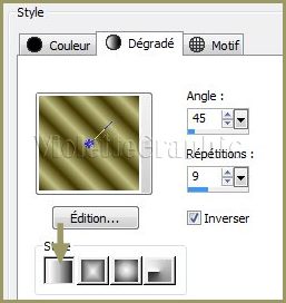 linéaire angle: 45°/Répétitions : 9/Inverser coché