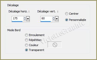( valeur: RVB /Tolérance et Progressivité à 0 /intérieur) Sélection/Inverser 33 - Effets/Effets 3D/Ombre Portée