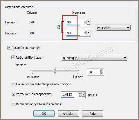 Image/Redimensionner à 90% /décocher " Redimensionner tous les