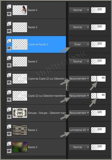 dans la sélection Sélection/Ne rien sélectionner Placer vos modes de fusion et vos opacités: