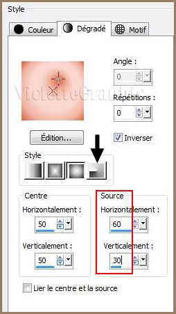configuré : linéaire/angle: 0°/Répétition: