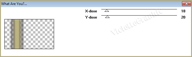 négatives : - 5 en vertical/ -21 en horizontal 18 - Effets/Toadies/What Are You ?...réglages suivants : **Effets/Filtre Personnalisé/Emboss_03 *** Option : si vous voulez voir le fond plus foncé 19 ** Répéter l'ombre portée avec les valeurs