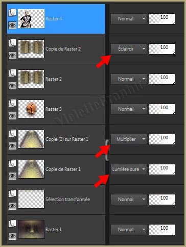 Placer comme sur l'image finale Placer vos modes de fusion et vos opacités: