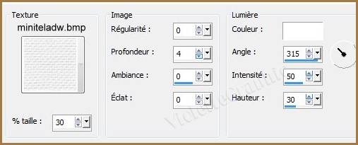 Remplir du dégradé **Calques/Dupliquer 11 - Effets/Effets de Textures/Torchis