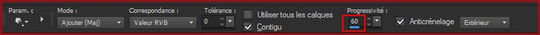 ( valeur: RVB /Tolérance et Progressivité à 0 /intérieur)