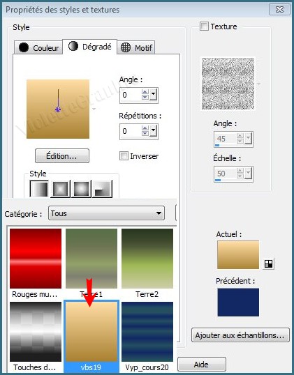 ( valeur: RVB /Tolérance et Progressivité à 0 /intérieur)