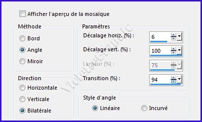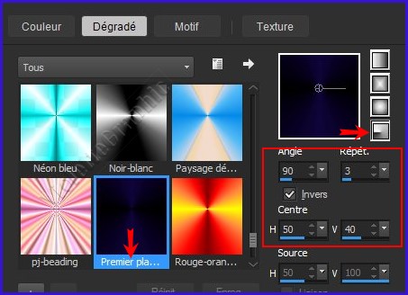 configuré : radial/angle: 90°/Répétitions : 3/Inverser coché
