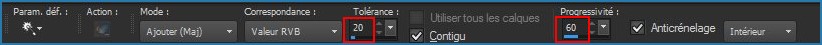 avec la baguette magique tolérance: 20 Sélection/Modifier/Progressivité : 60