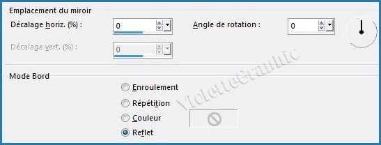 linéaire/angle: 0°/ Répétition: 1/Inverser non coché