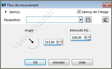 Réglages/Flou/Flou de mouvement réglages suivants :
